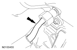 106. NOTICE: It is very important to visually inspect the routing of the wire harness to make sure that the wire harness will not be pinched or damaged between the fuel rail and the cylinder head during installation.