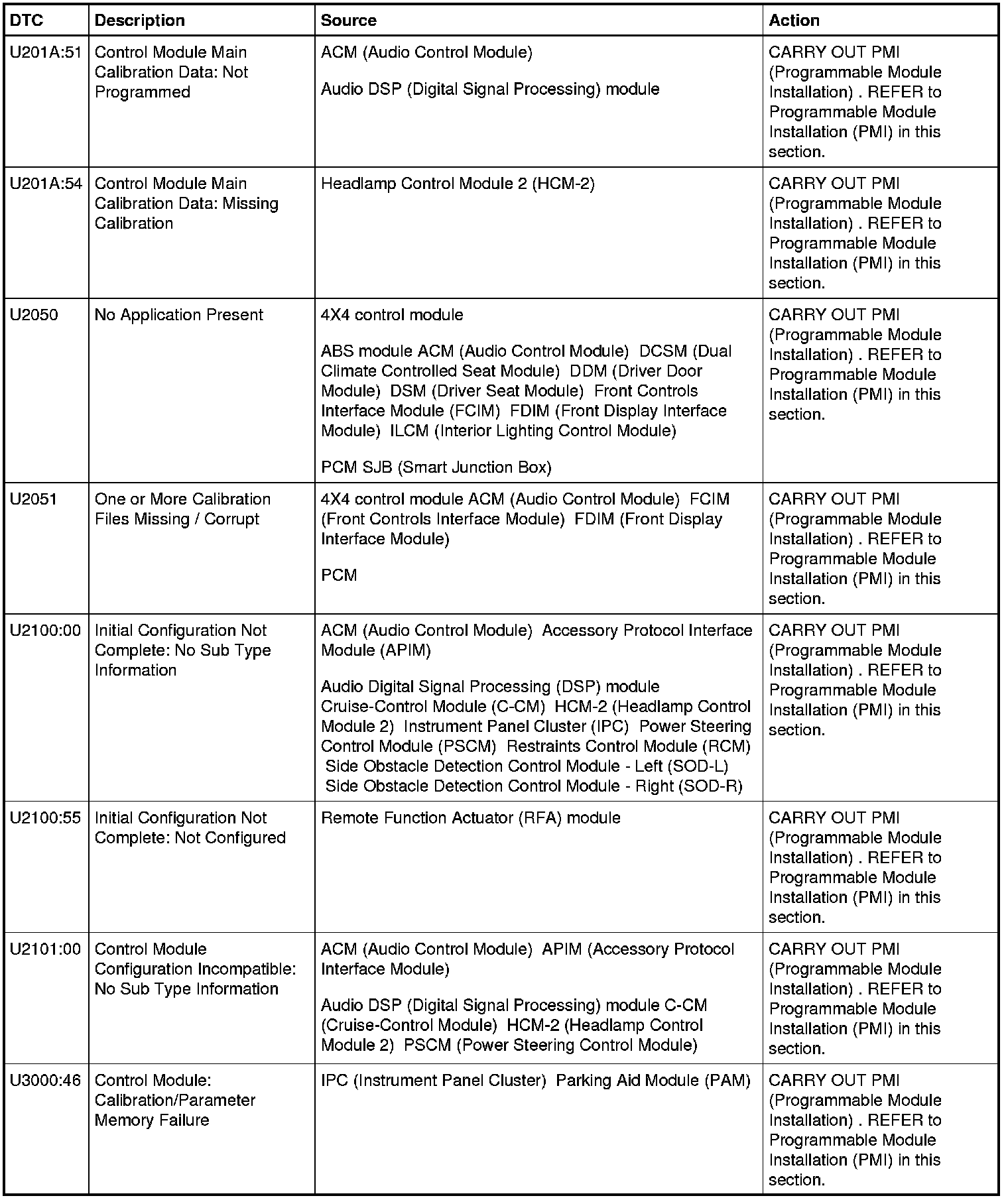 Home >> Ford >> 2012 >> Taurus AWD V6-3.5L >> Repair and Diagnosis >> A L L Diagnostic Trouble Codes ( DTC ) >> Testing and Inspection >> Diagnostic Trouble Code Descriptions >> Information Bus >> Module Configuration