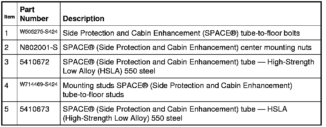 1. NOTE: The Side Protection and Cabin Enhancement (SPACE(R)) tube is serviced as an assembly only.