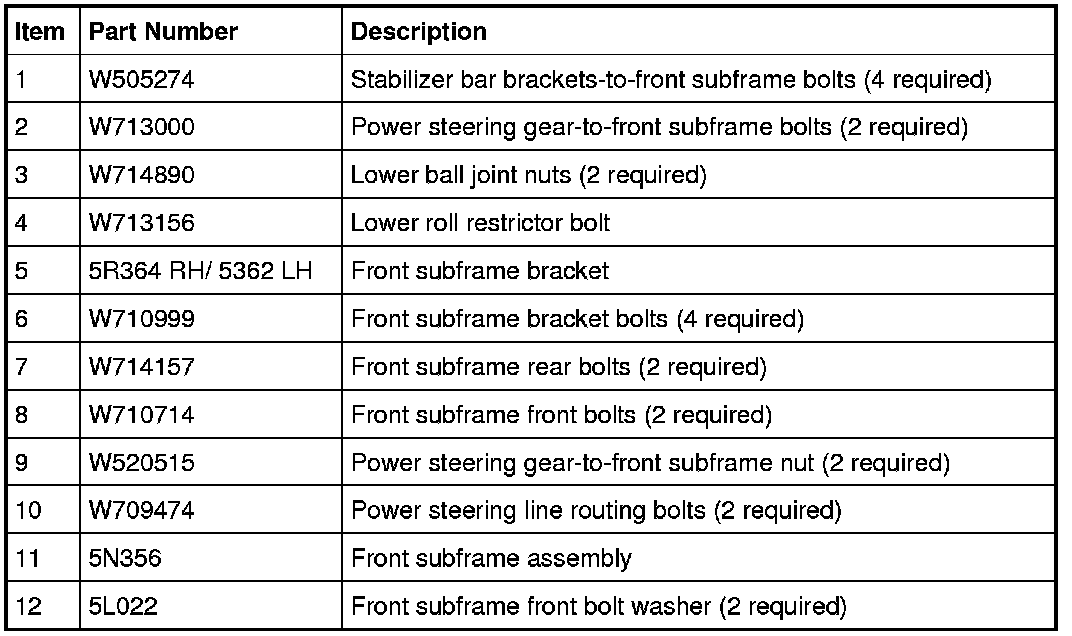 Home >> Ford >> 2012 >> Taurus AWD V6-3.5L >> Repair and Diagnosis >> Body and Frame >> Frame >> Subframe >> Front Subframe >> Service and Repair