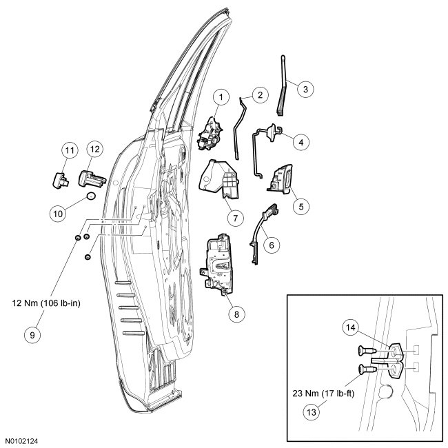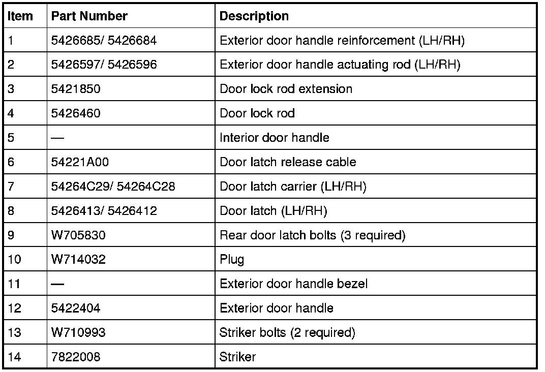 Rear Door Handles, Locks and Latches - Exploded View