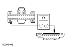- Measure the resistance between the DLC (Data Link Connector) C251-6, circuit VDB04 (WH/BU), harness side and the DLC (Data Link Connector) C251-14, circuit VDB05 (WH), harness side.