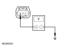 - Measure the voltage between the PSCM (Power Steering Control Module) C1463A-3, circuit CBP34 (VT/BN), harness side and ground.