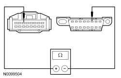 - Measure the resistance between the 4X4 control module C281-3, circuit VDB04 (WH/BU), harness side and the Data Link Connector (DLC) C251-6, circuit VDB04 (WH/BU), harness side.