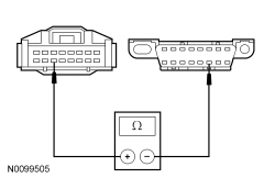 - Measure the resistance between the 4X4 control module C281-11, circuit VDB05 (WH), harness side and the DLC (Data Link Connector) C251-14, circuit VDB05 (WH), harness side.