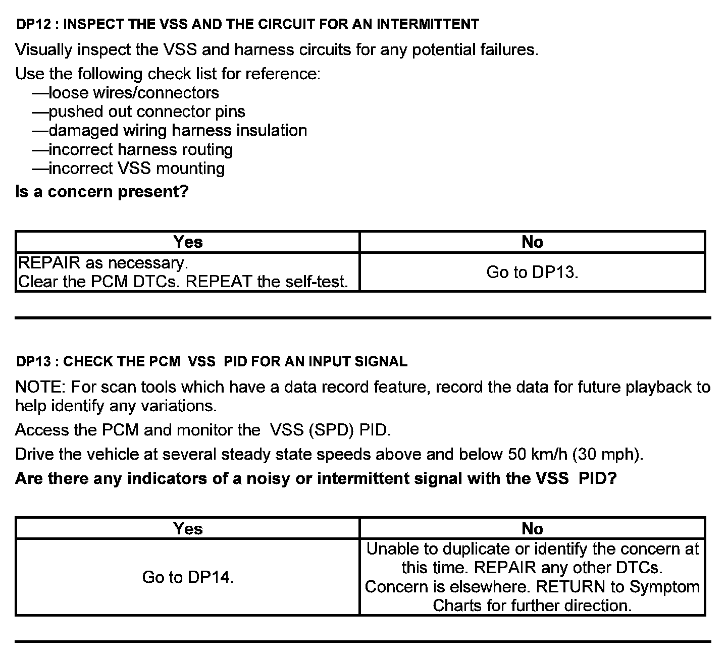 Home >> Ford >> 2012 >> Taurus AWD V6-3.5L >> Repair and Diagnosis >> Powertrain Management >> Computers and Control Systems >> Testing and Inspection >> Pinpoint Tests >> Test DP: Output Shaft Speed (OSS) Sensor/Vehicle Speed Sensor ( VSS)