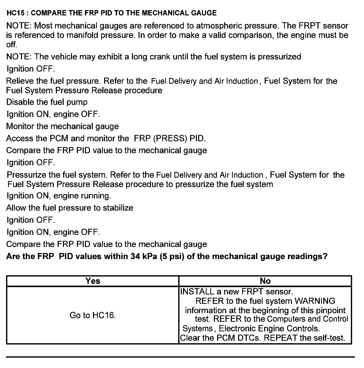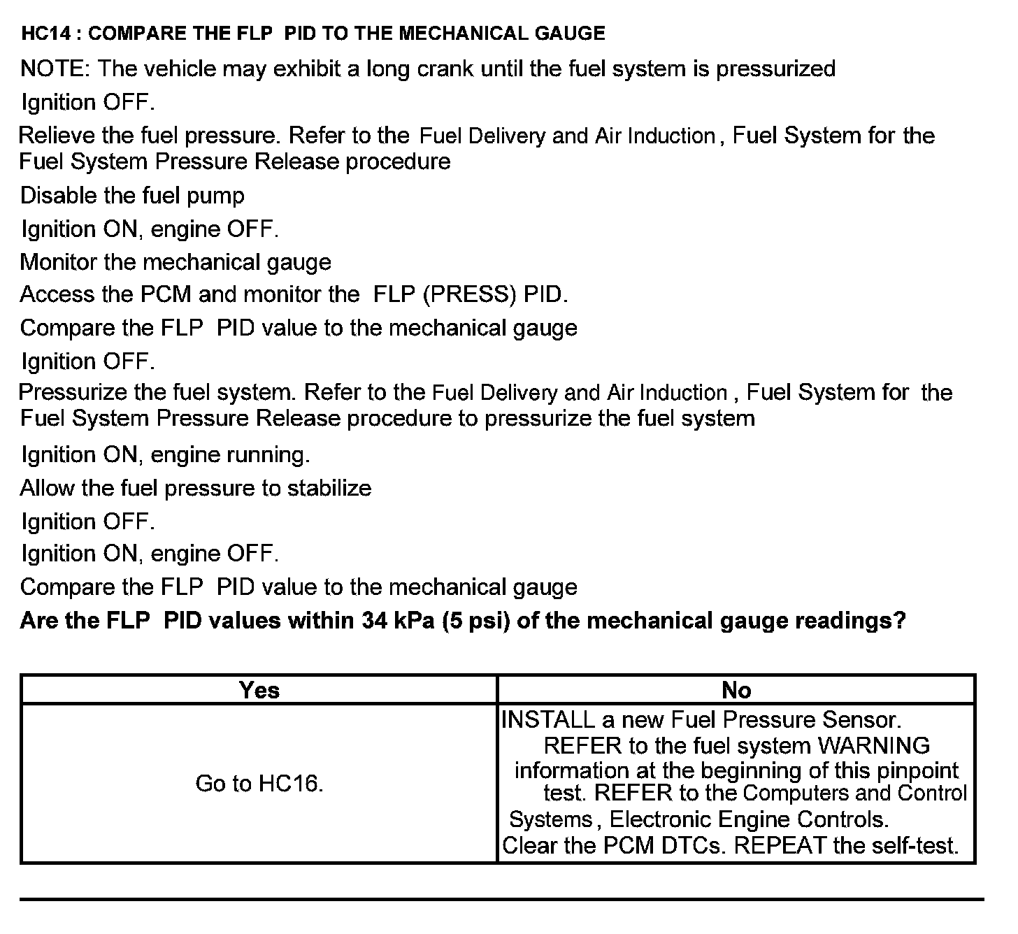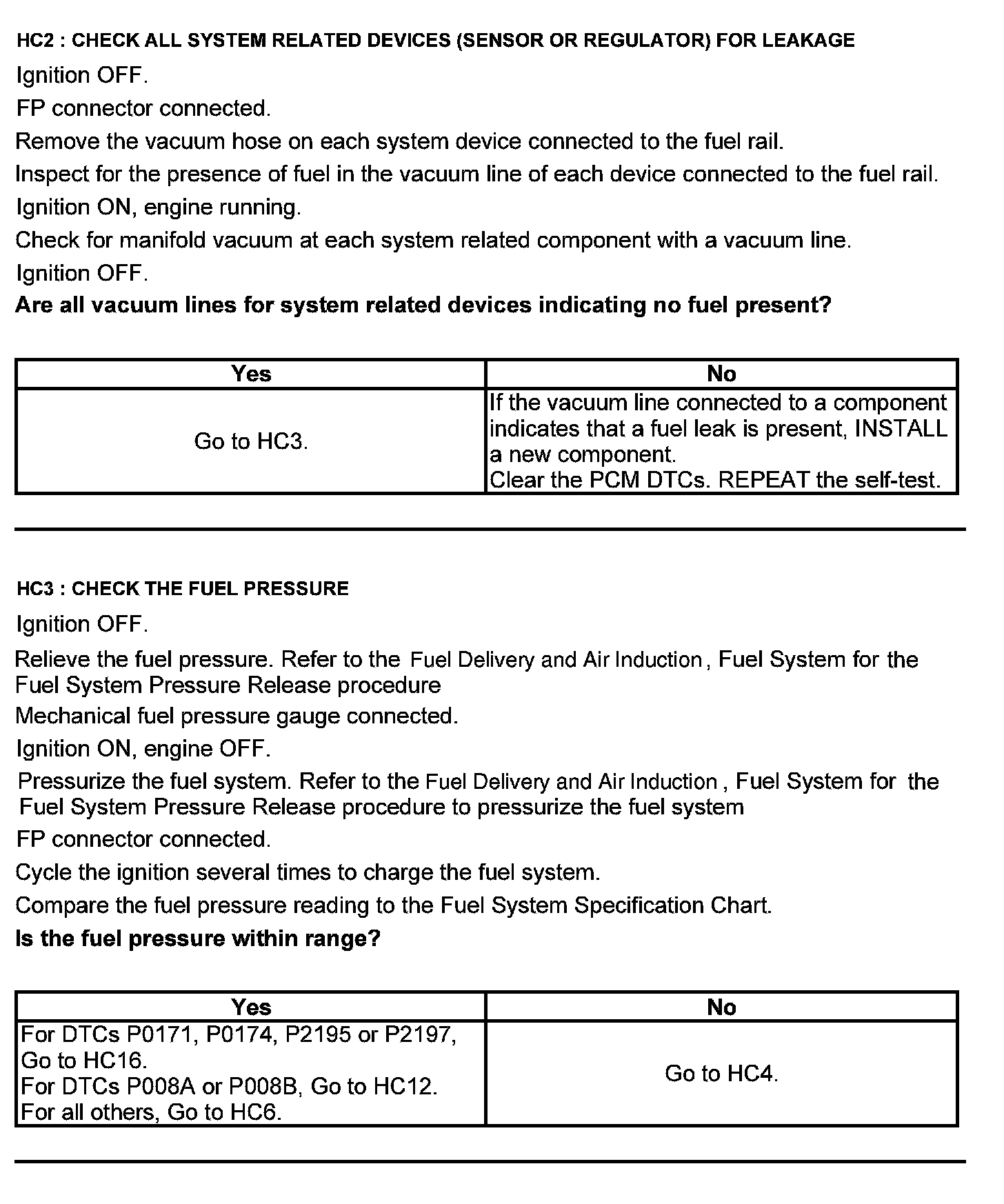 Test HC: Fuel Delivery System