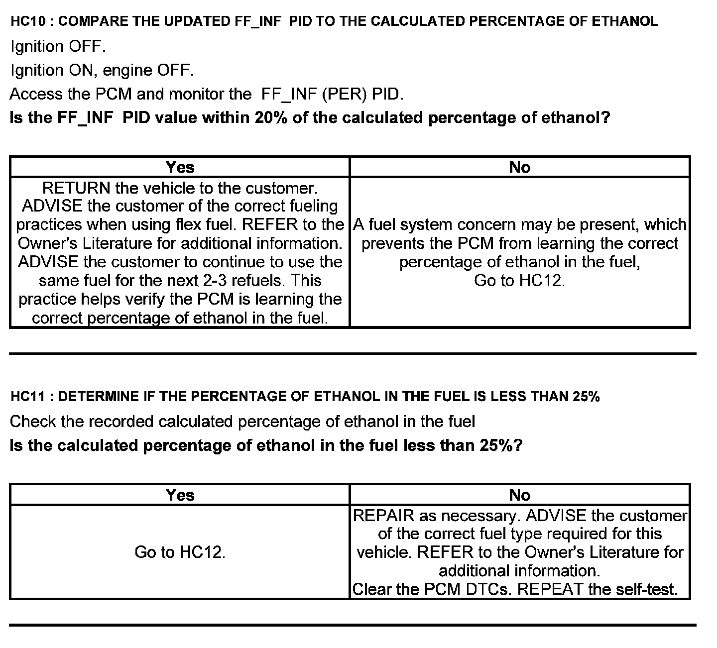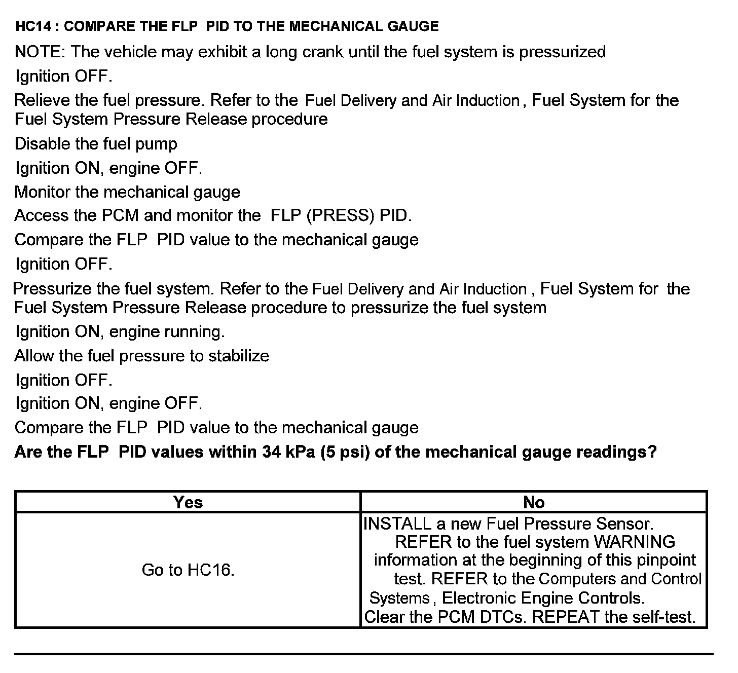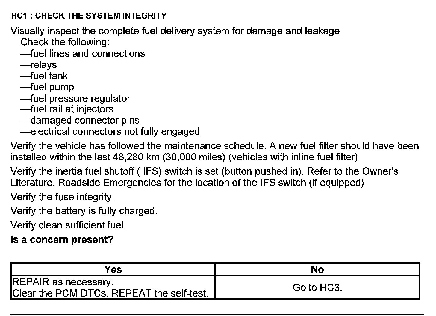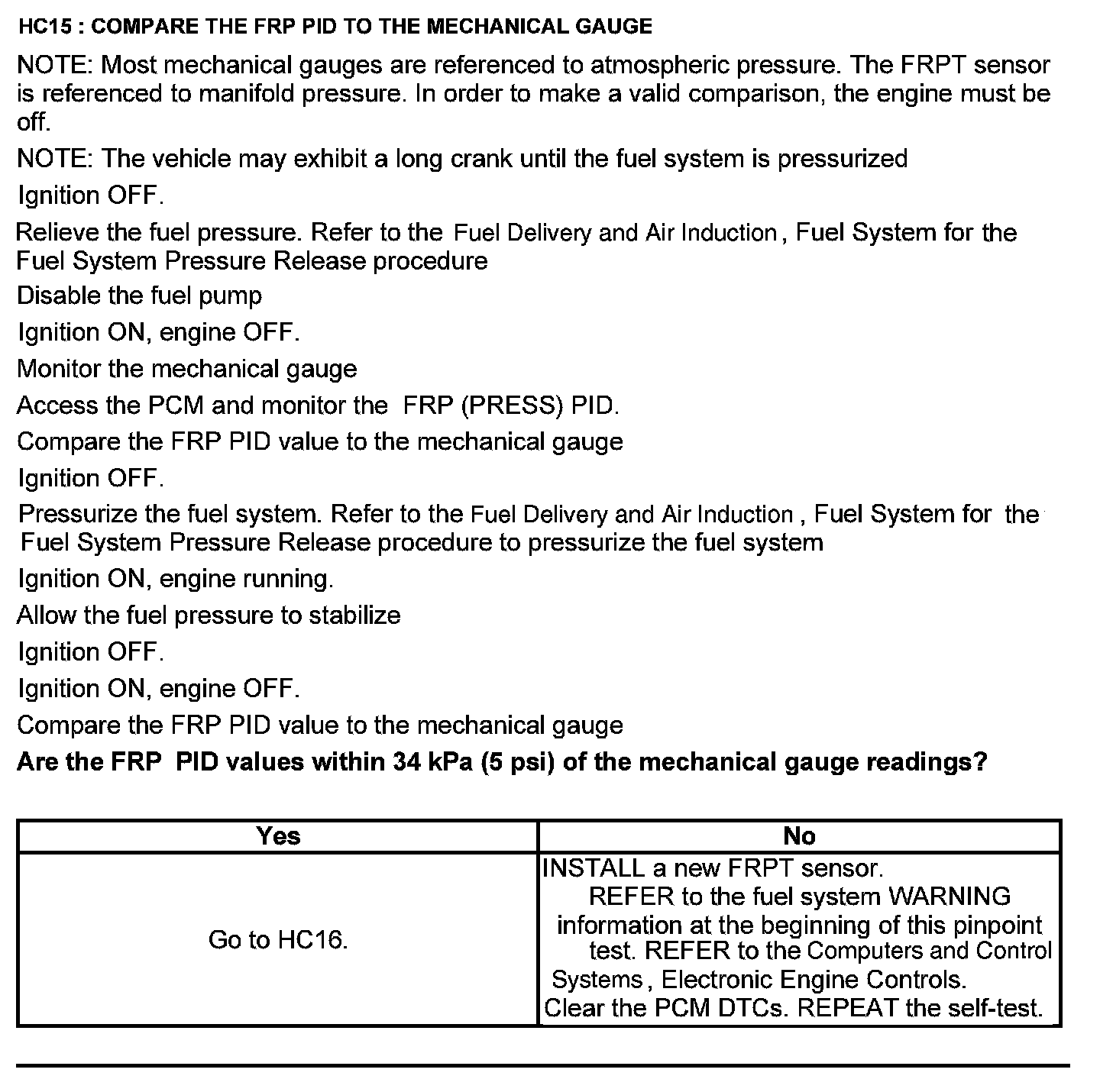 Test HC: Fuel Delivery System