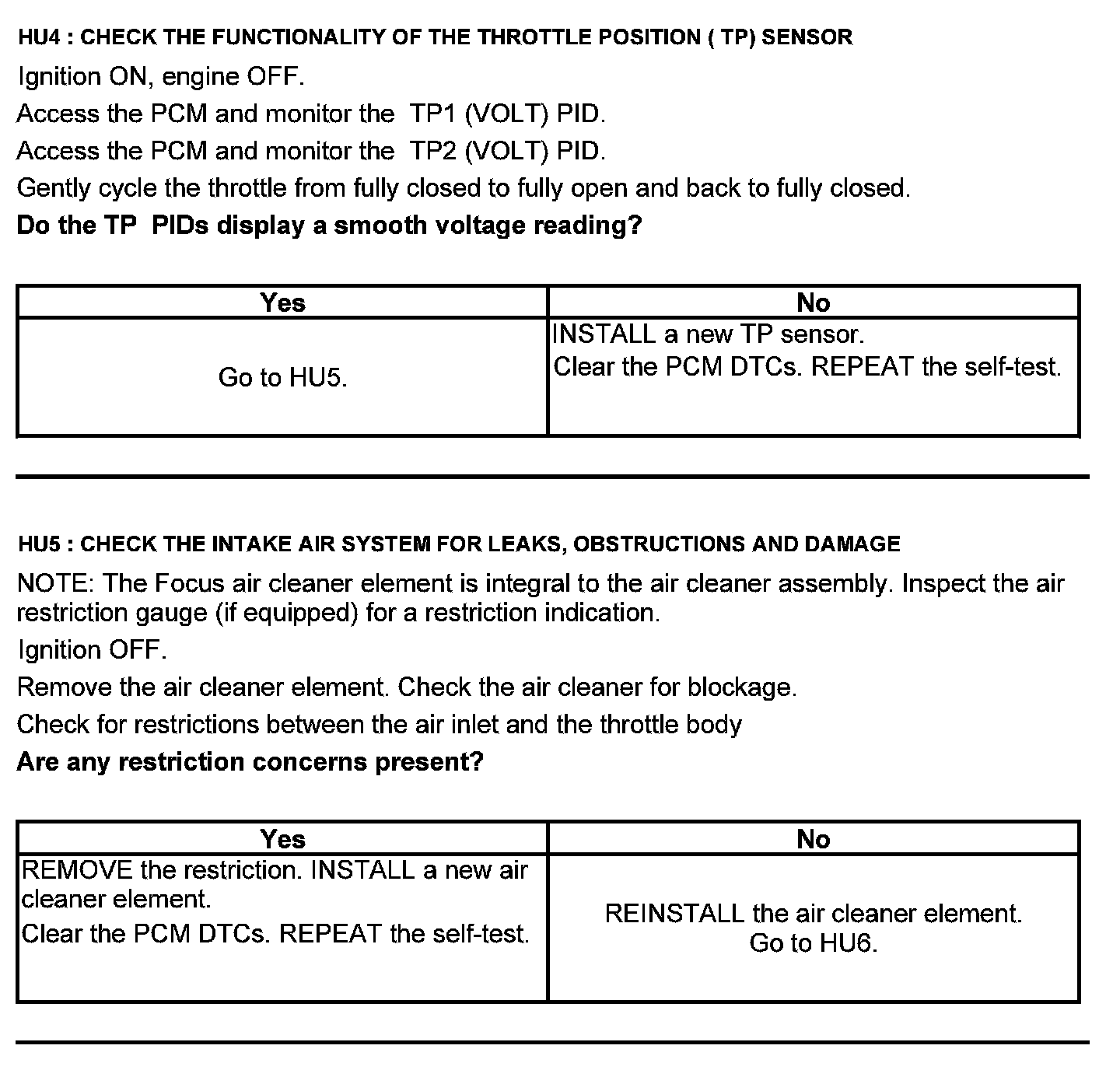 Test HU: Intake Air Systems