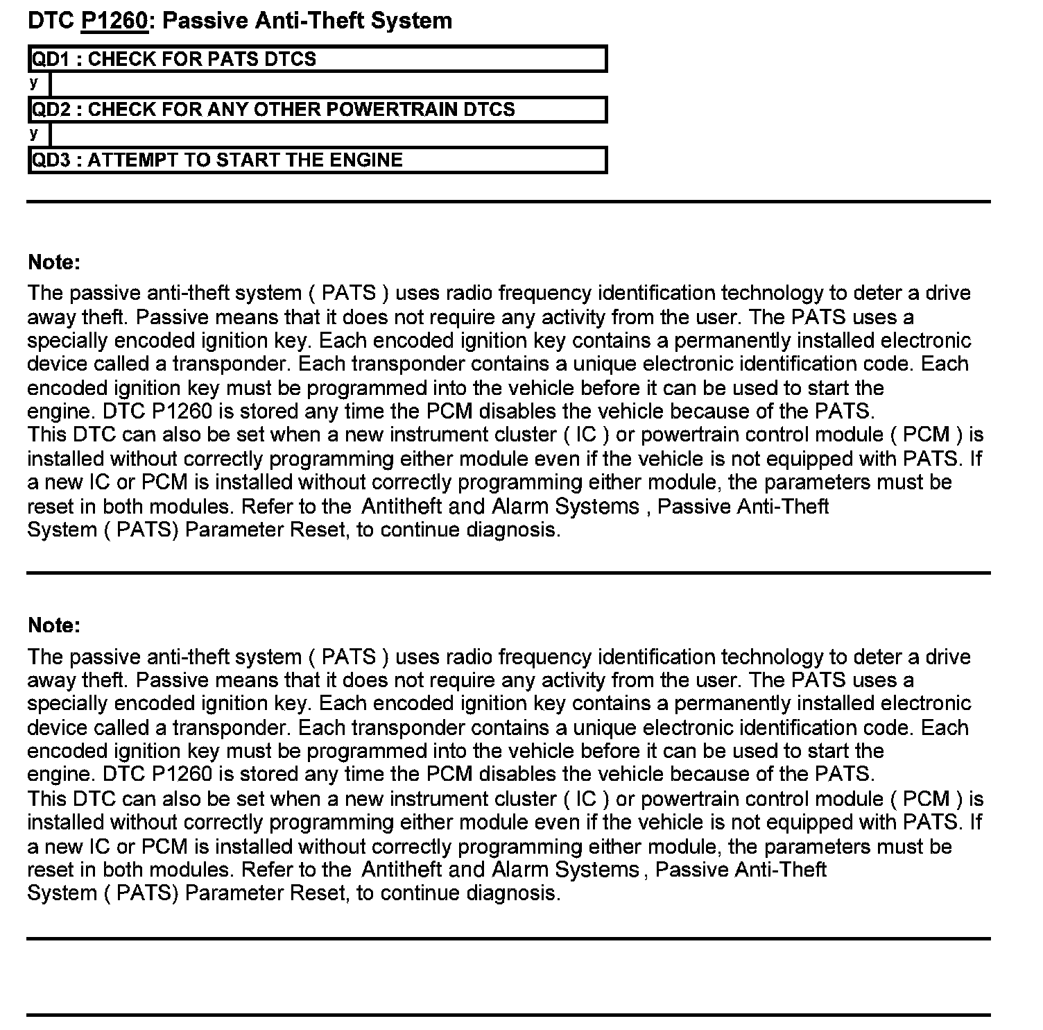 Test QD: DTC P1260: Passive Anti-Theft System