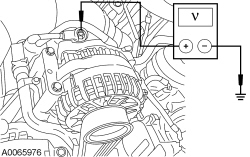 - With the engine running at idle, headlamps on and blower on high, measure the voltage drop between generator B+ C102B, circuit SDC02 (RD) and the positive battery terminal.