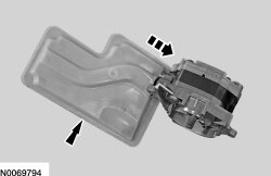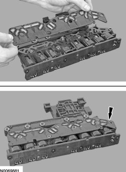 NOTICE: Use care not to break the alignment tabs when installing the solenoid body filter. Damage to the transaxle will occur if the solenoid body is not correctly aligned.
