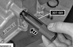 Using the Converter Seal Installer 307-575 and a dead blow hammer, install the torque converter hub seal in the torque converter housing.