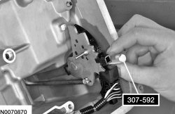 197. Using the Manual Lever Retaining Pin Installer 307-592, drive the TR (Transmission Range) sensor locking pin into the transaxle case.