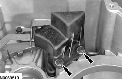 NOTICE: Make sure that the filter passage areas are clean of foreign material before installing the filter. Damage to the transaxle will occur if the filter passages are not clean.