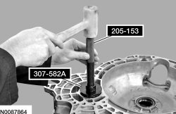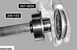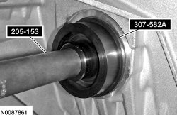 205. Assemble the Handle 205-153 on the Cover Axle Seal Installer 307-582A and install a new RH halfshaft seal on Cover Axle Seal Installer 307-582A.