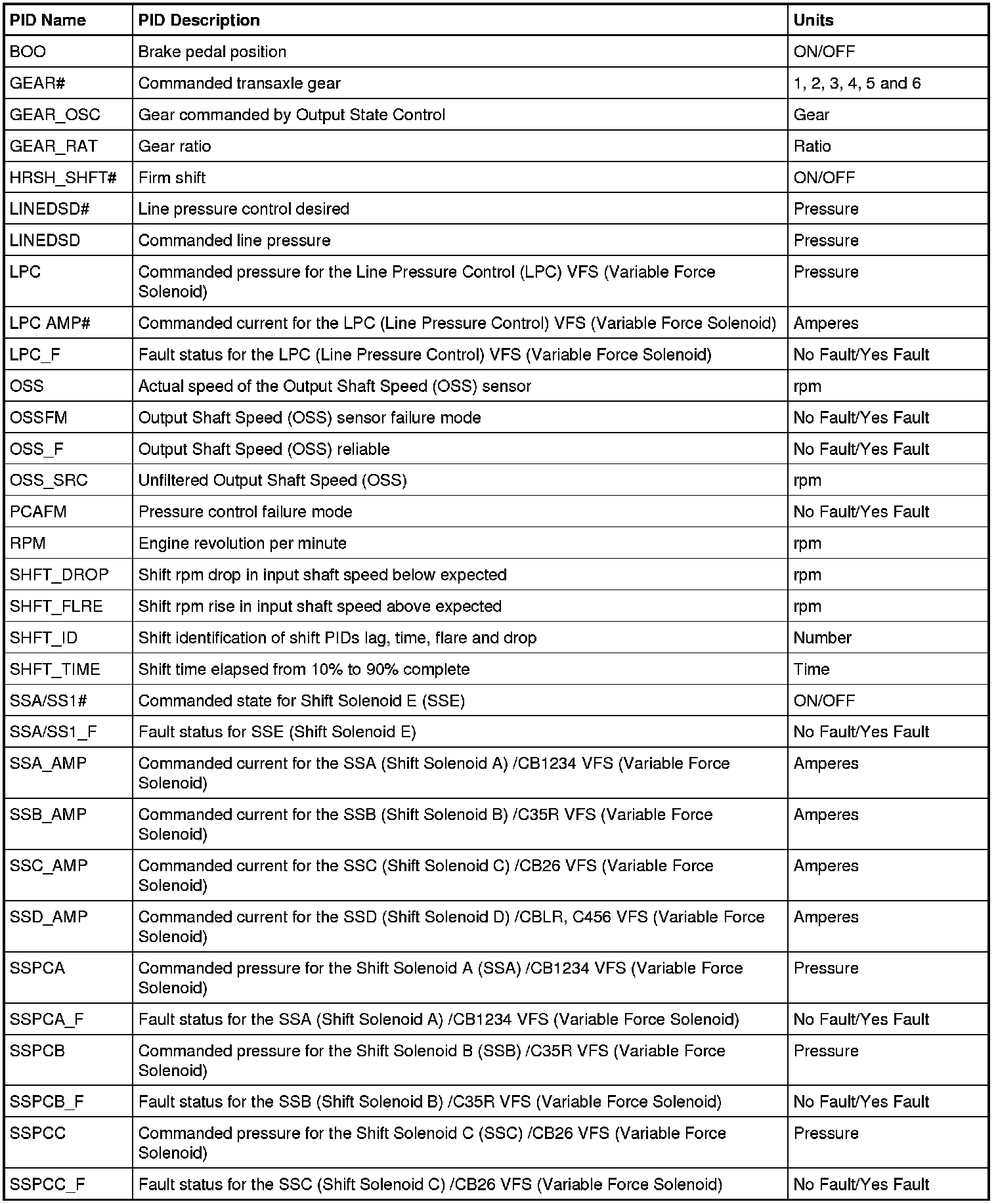 Diagnostic Parameters Identification (PID) Chart