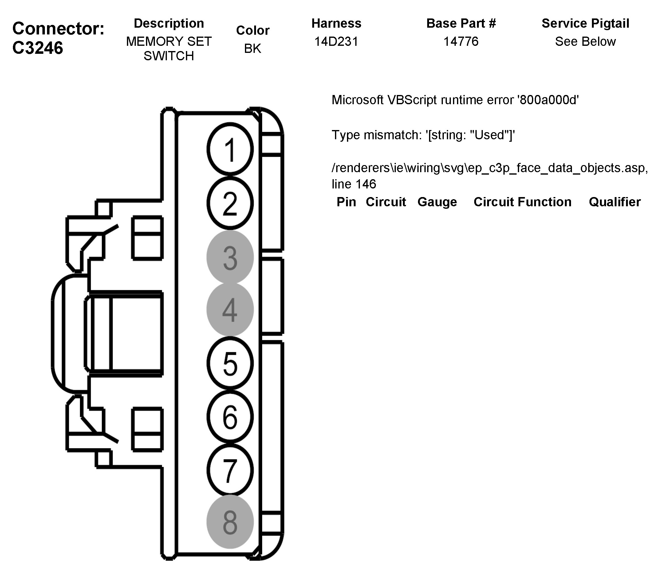 Home >> Ford >> 2012 >> Taurus FWD V6-3.5L >> Repair and Diagnosis >> Body and Frame >> Seats >> Memory Positioning Systems >> Memory Positioning Switch >> Diagrams >> C3246 Memory Set Switch