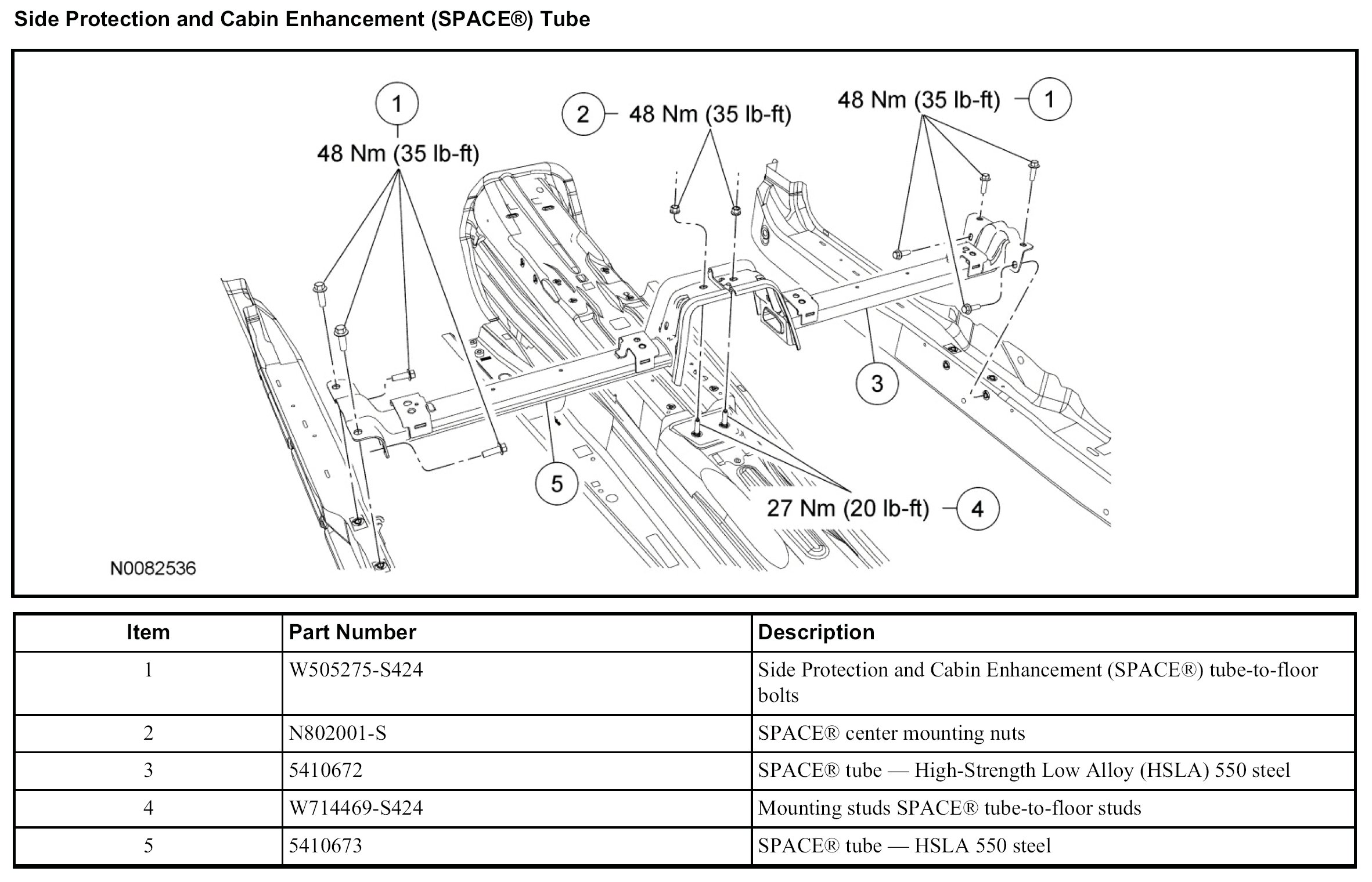 1. NOTE: The Side Protection and Cabin Enhancement (SPACE(R)) tube is serviced as an assembly only.