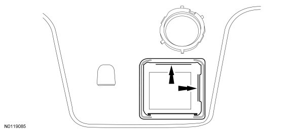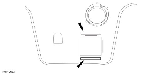 8. NOTE: Make sure that the forward facing flange is located on the RH side of the HCM-2 (Headlamp Control Module 2) view window area.