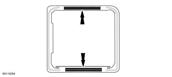 Apply the HCM-2 (Headlamp Control Module 2) mounting bracket onto the windshield making sure that the inner edges of the bracket are aligned to the locator lines as shown.