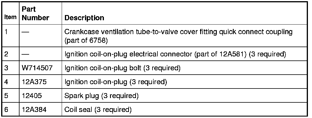Home >> Ford >> 2012 >> Taurus FWD V6-3.5L >> Repair and Diagnosis >> Powertrain Management >> Ignition System >> Spark Plug >> Service and Repair >> Engine Ignition Components - Exploded View