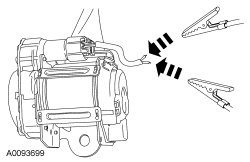 9. Deploy the safety belt buckle or retractor by touching the ends of the 2 wires of the jumper harness to the terminals of a 12-volt battery.