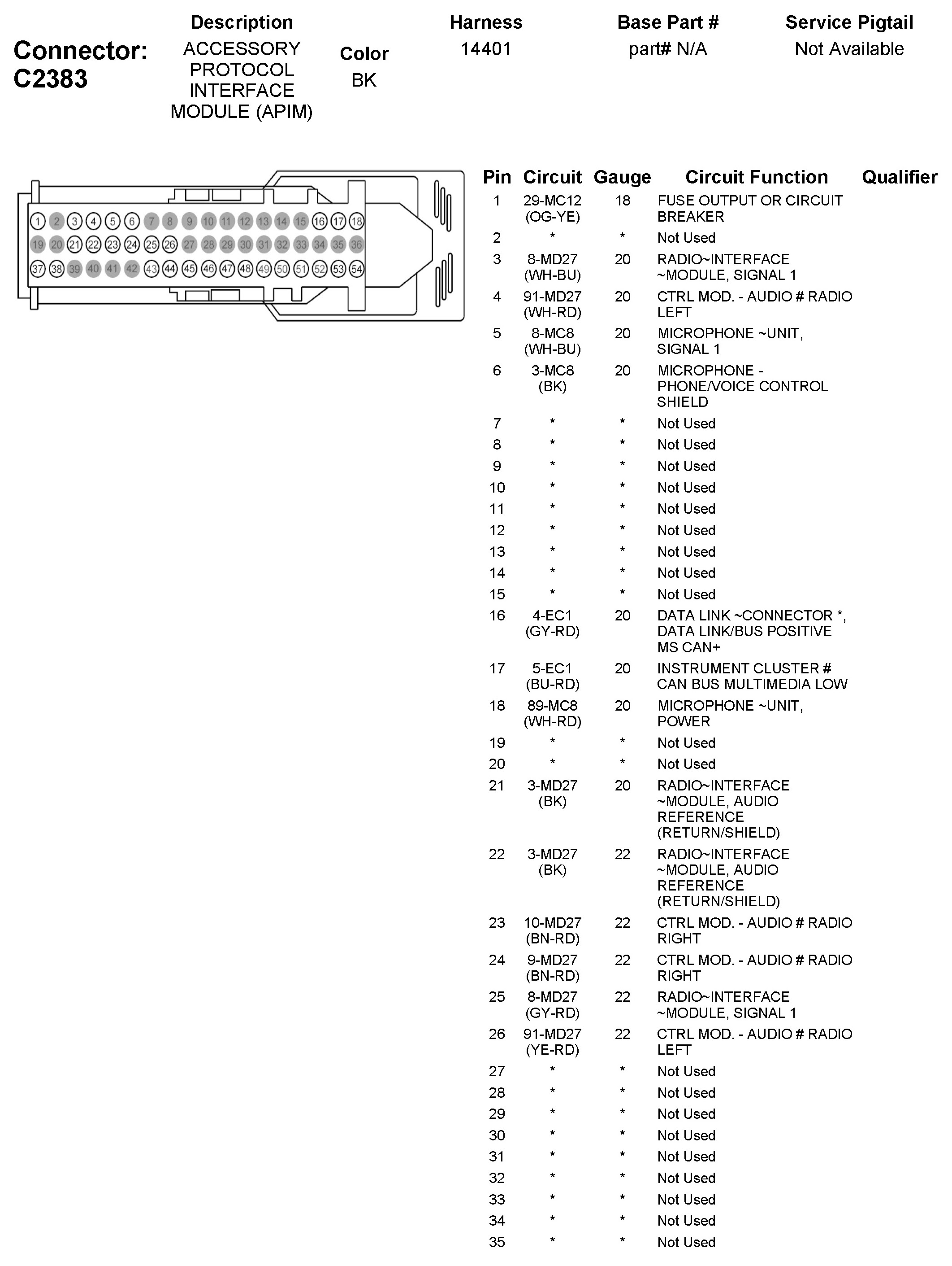 Home >> Ford >> 2012 >> Transit Connect L4-2.0L >> Repair and Diagnosis >> Accessories and Optional Equipment >> Cellular Phone >> Communications Control Module >> Diagrams >> C2383 Accessory Protocol Interface Module (APIM)