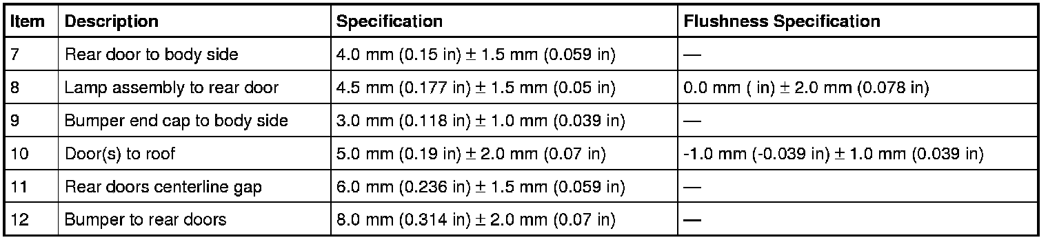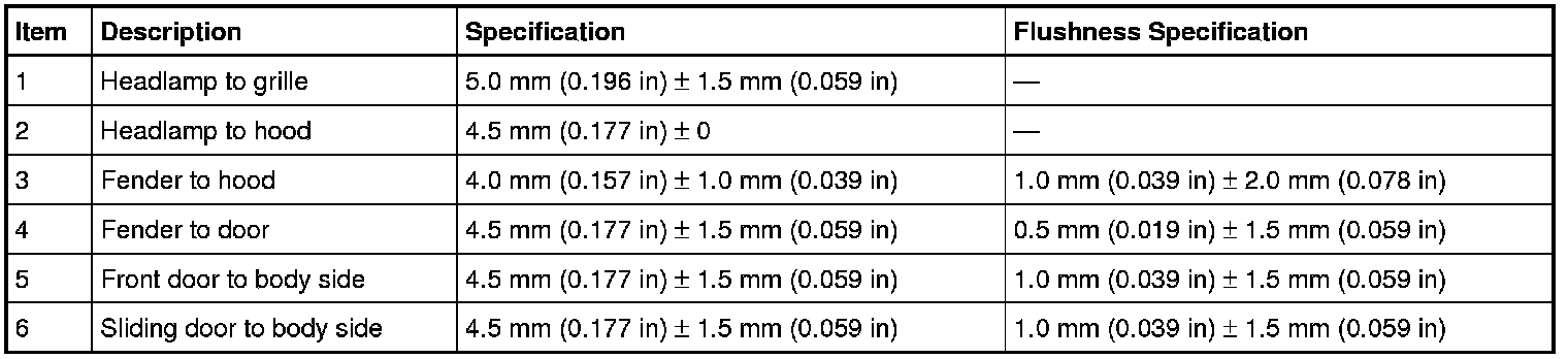 Body Side Closure Dimensions