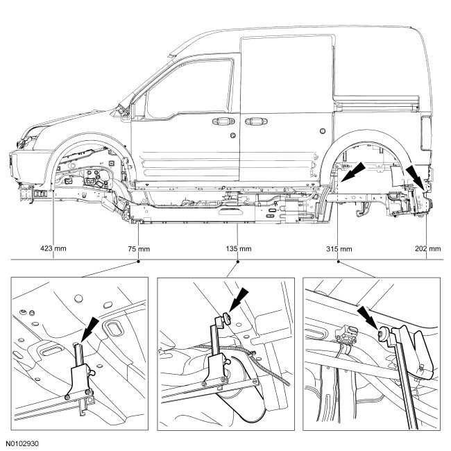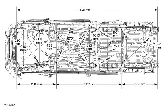NOTE: A structural frame rail sectioning kit is available for the front frame rail section. It is mandatory to maintain factory body dimensions when carrying out any repair procedure to the frame rails. Refer to Frame Members .