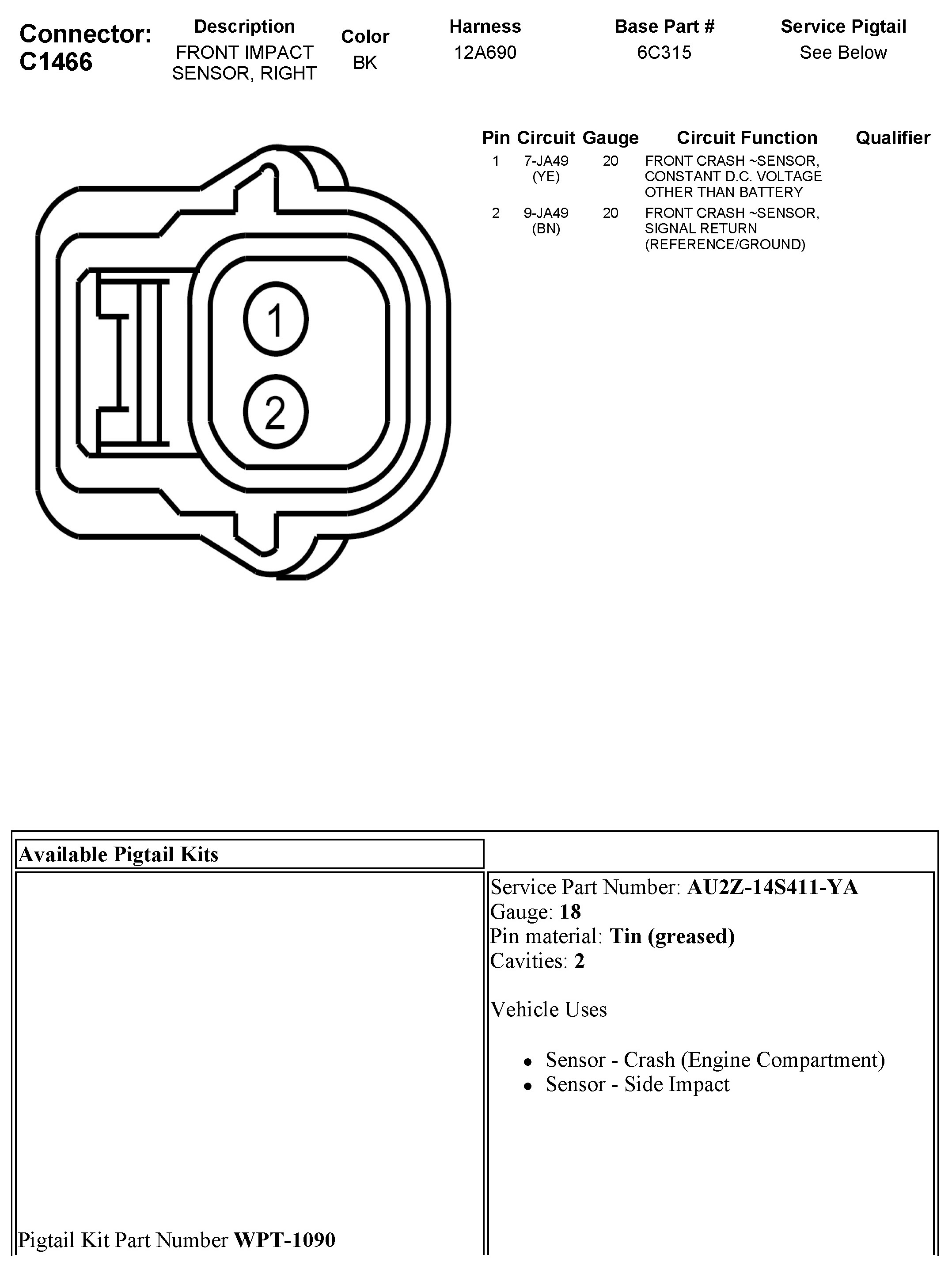 C1466 Front Impact Sensor, Right