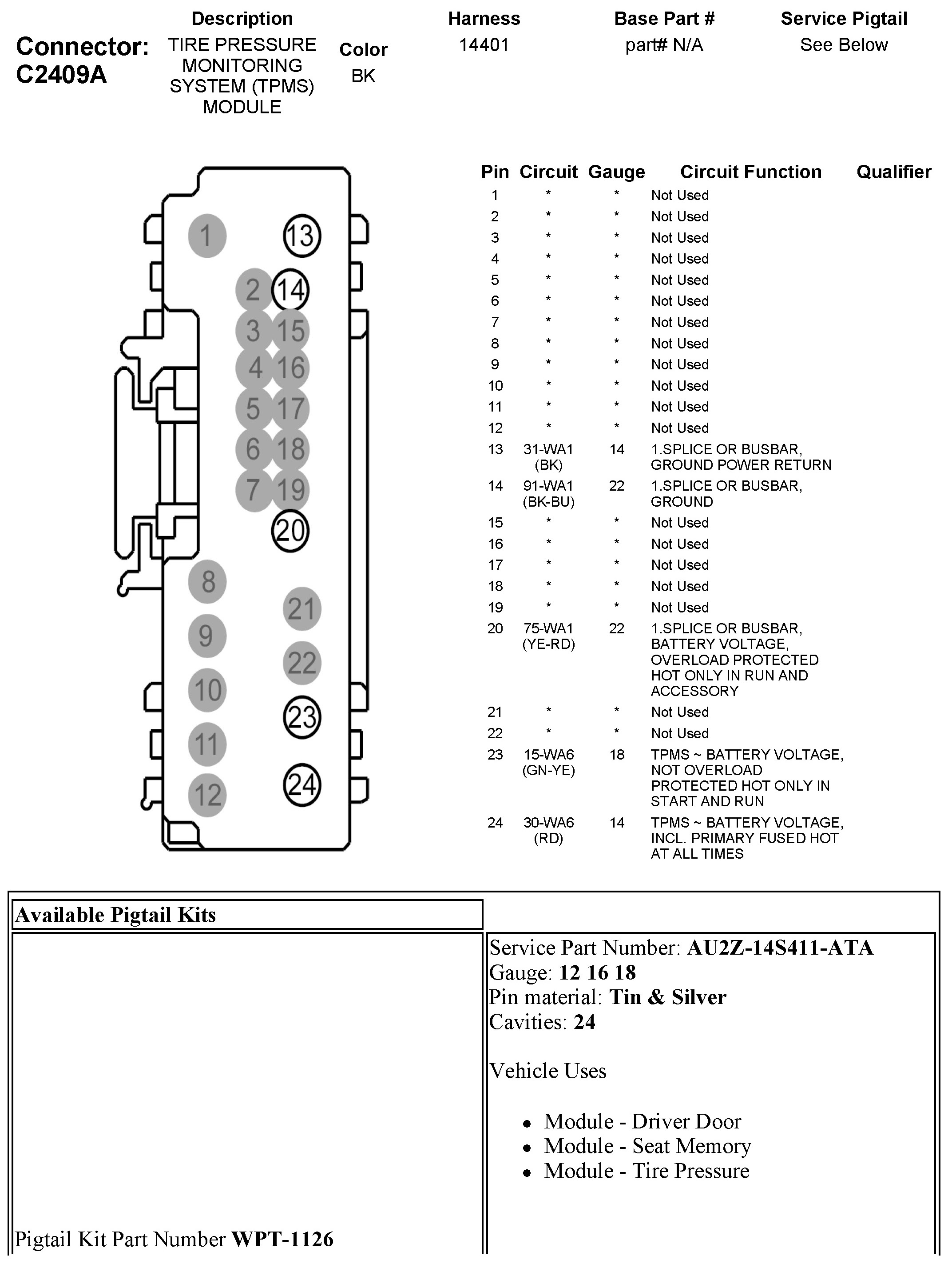 C2409A Tire Pressure Monitoring System (TPMS) Module