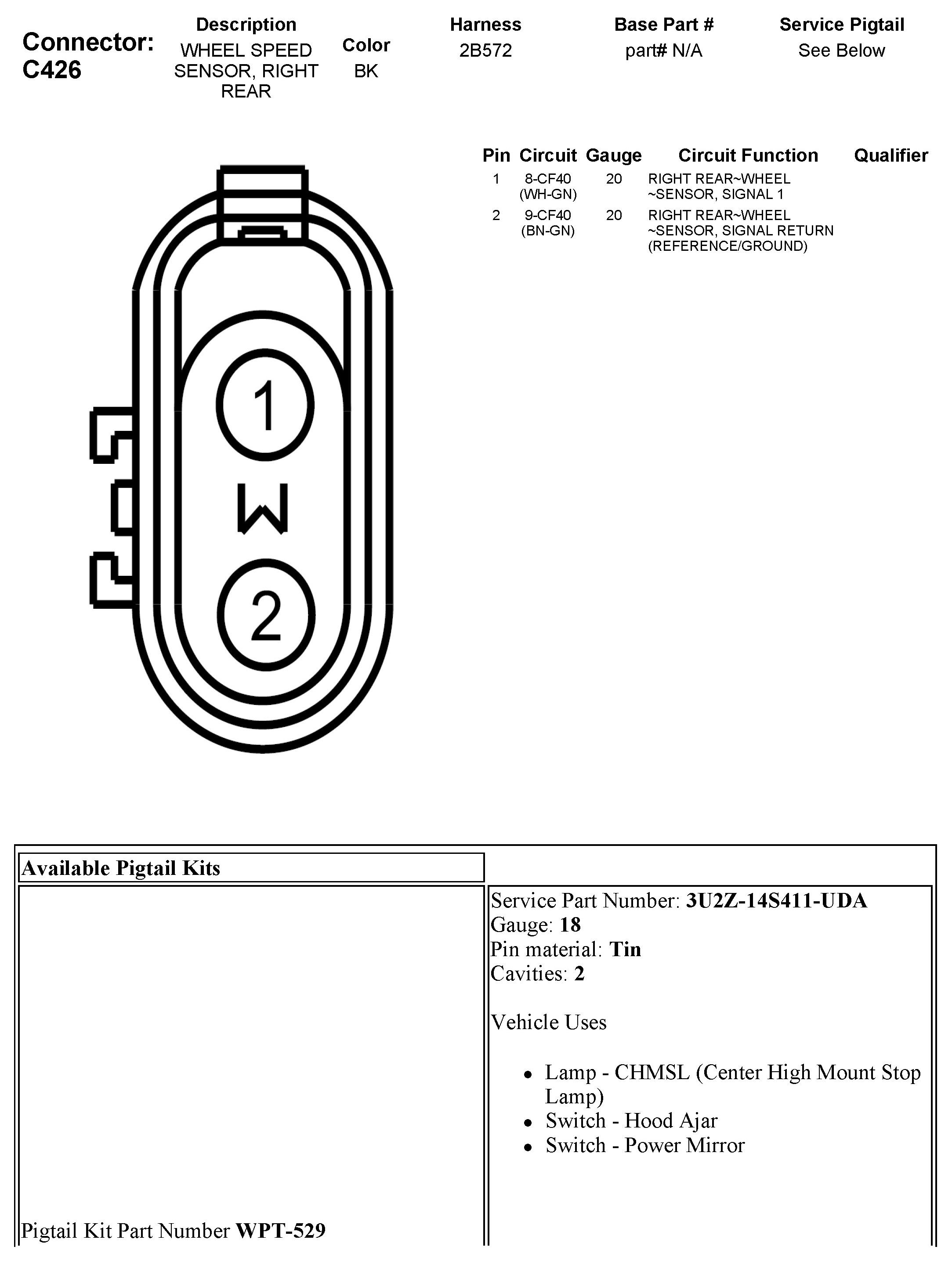 C426 Wheel Speed Sensor, Right Rear