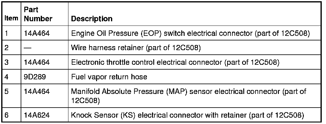 7. Detach the engine wiring harness pin-type retainer from the intake manifold.