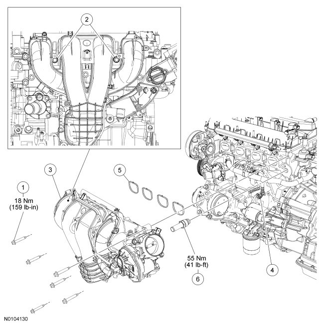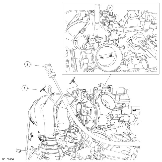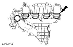 1. NOTICE: If the engine is repaired or replaced because of upper engine failure, typically including valve or piston damage, check the intake manifold for metal debris. If metal debris is found, install a new intake manifold. Failure to follow these instructions can result in engine damage.