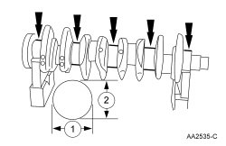2. Measure each of the crankshaft main bearing journal diameters in at least 2 directions and record the smallest diameter for each journal.
