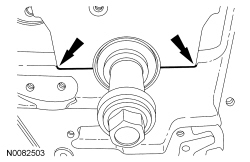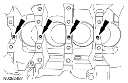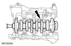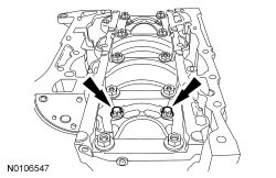 NOTE: Position the crankshaft to the rear of the cylinder block, then position the crankshaft to the front of the cylinder block before tightening the main bearing beam bolts.