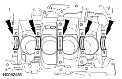 12. NOTE: If reusing the crankshaft main bearings, install them in their original positions and orientation as noted during disassembly.