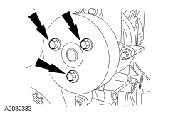 113. Install the coolant pump pulley and 3 bolts.