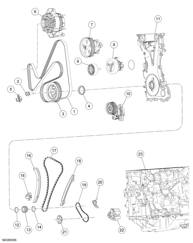 NOTICE: During engine repair procedures, cleanliness is extremely important. All parts must be thoroughly cleaned and any foreign material, including any material created while cleaning gasket surfaces, that enters the oil passages, coolant passages or the oil pan, can cause engine failure.