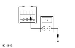- Measure the resistance between the GEM (Generic Electronic Module) C201D-2, circuit 91-DK20 (BK/RD), harness side and ground.