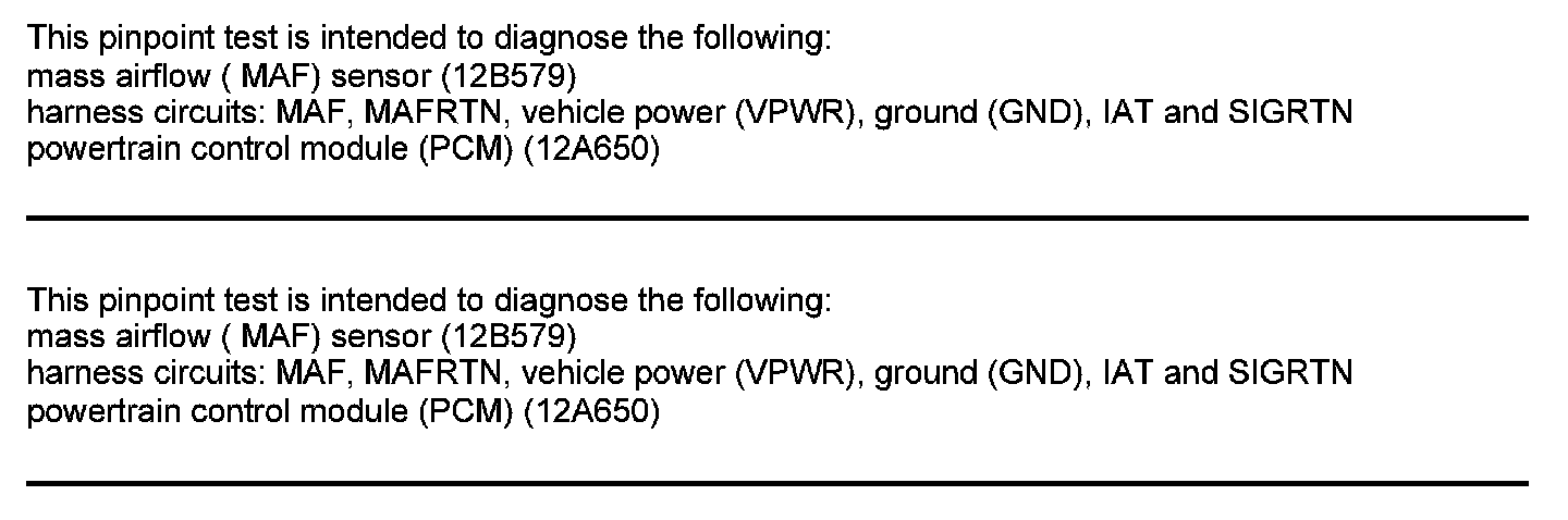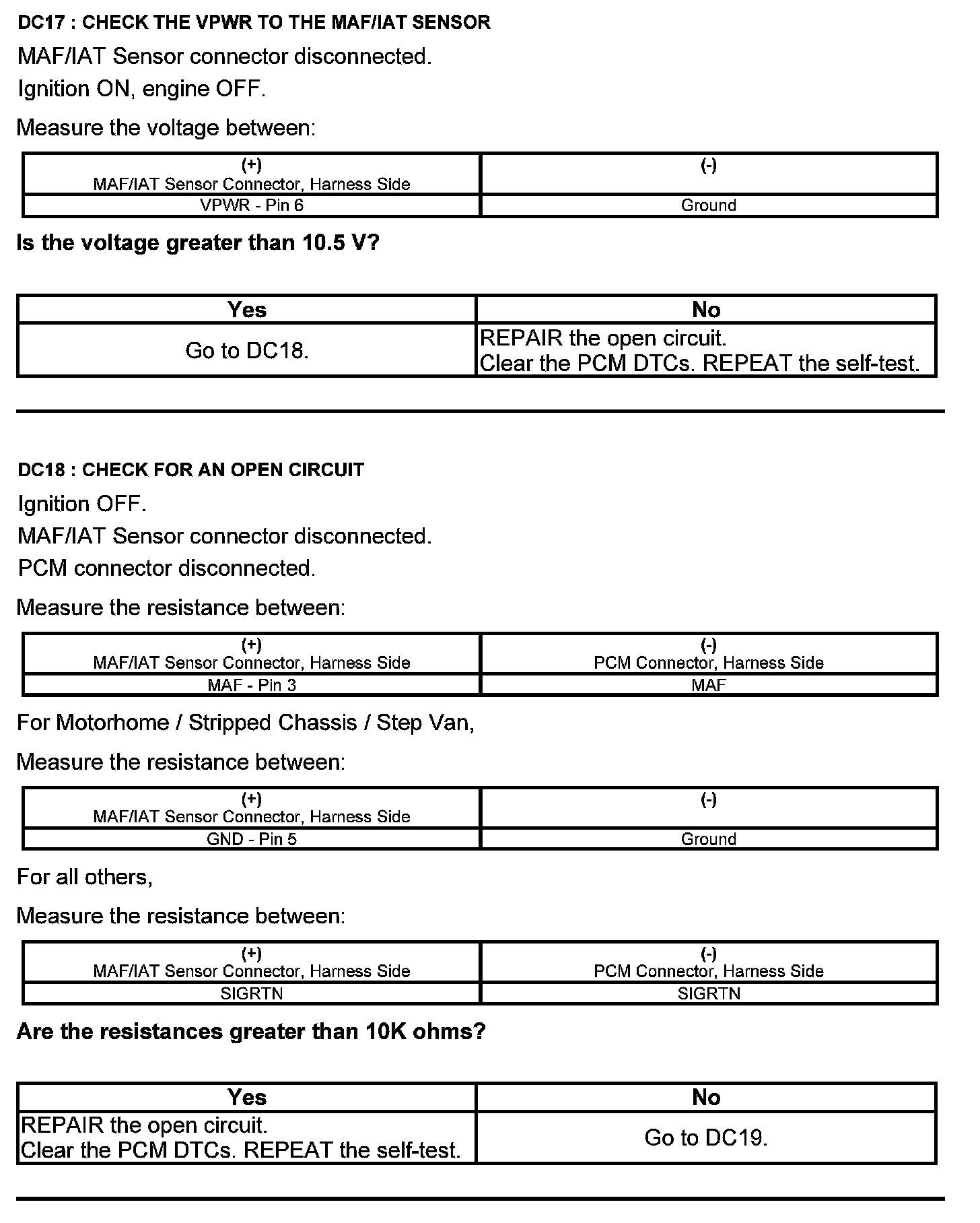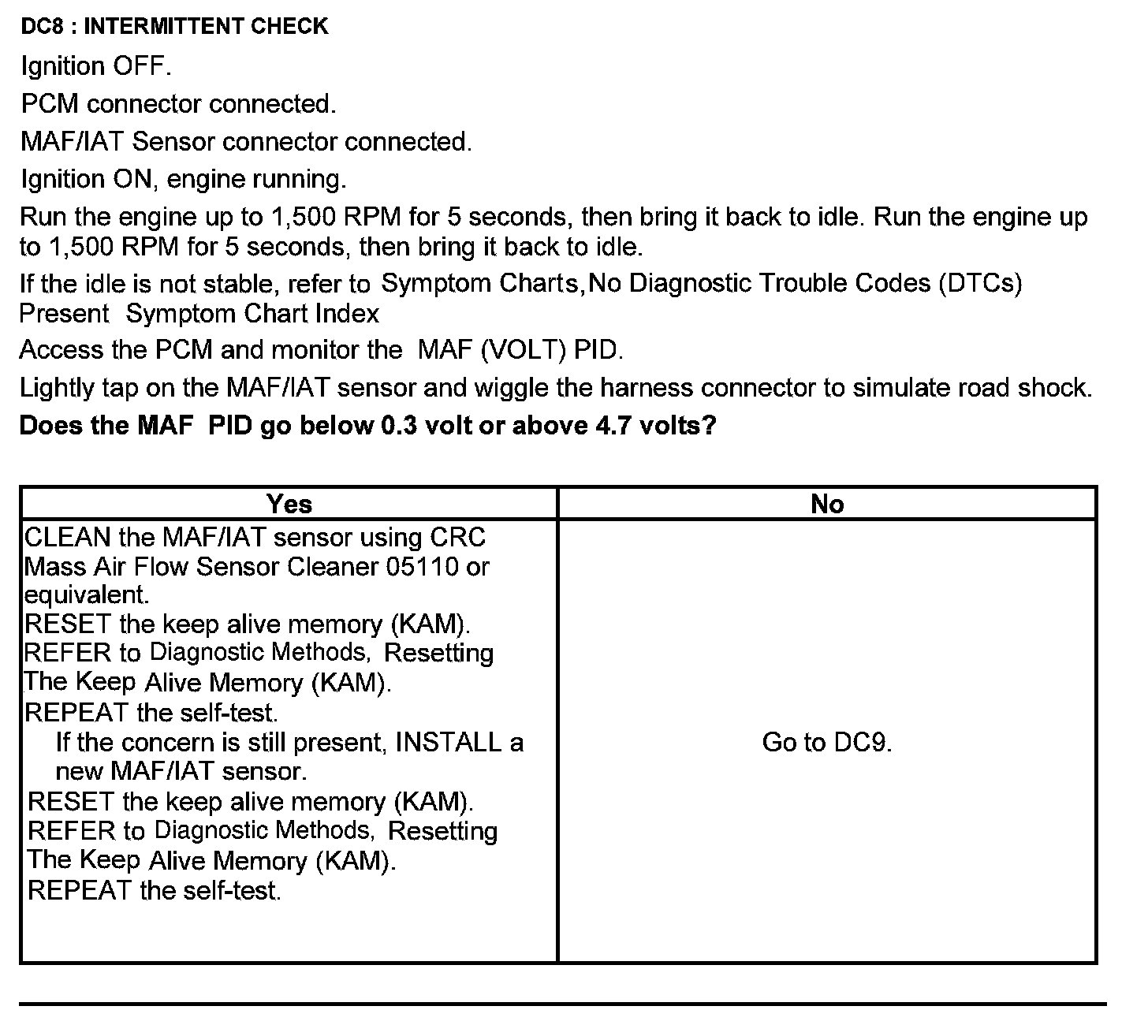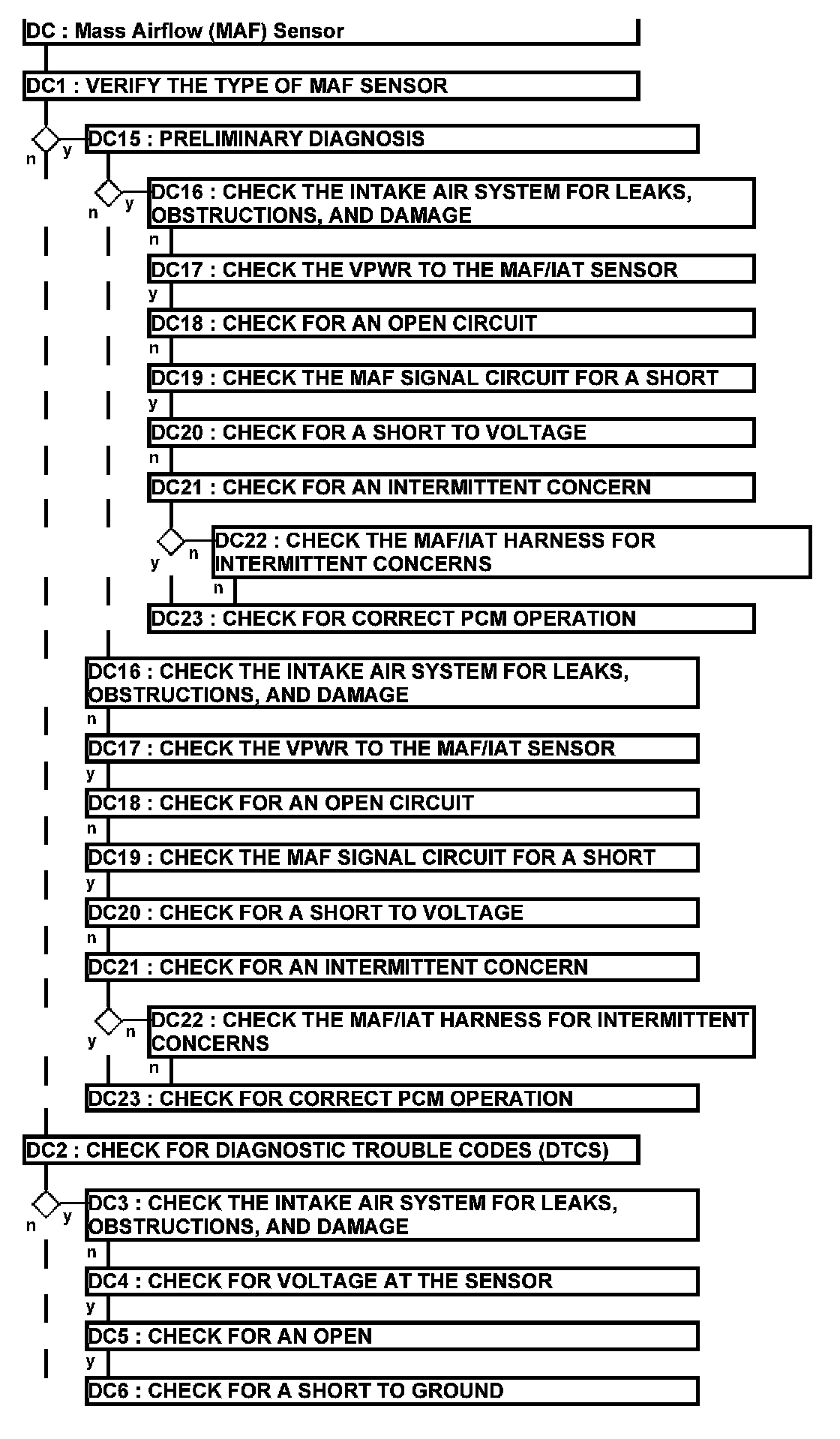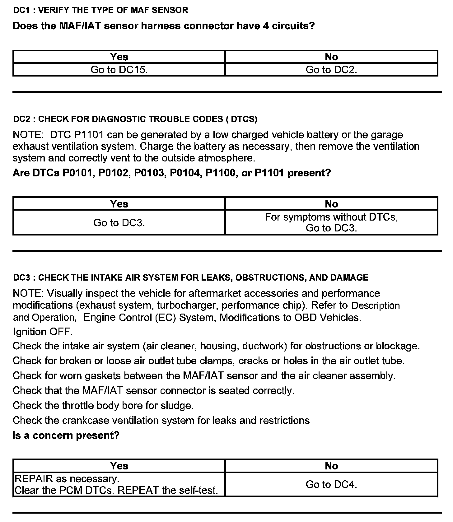 Home >> Ford >> 2012 >> Transit Connect L4-2.0L >> Repair and Diagnosis >> Powertrain Management >> Computers and Control Systems >> Testing and Inspection >> Pinpoint Tests >> Test DC: Mass Airflow (MAF) Sensor