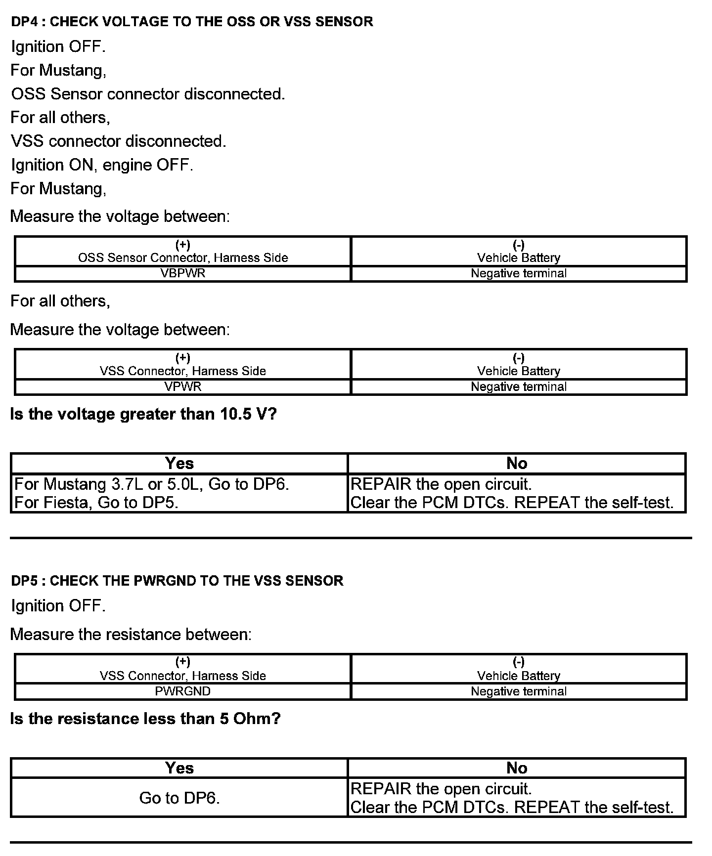 Test DP: Output Shaft Speed (OSS) Sensor/Vehicle Speed Sensor ( VSS)
