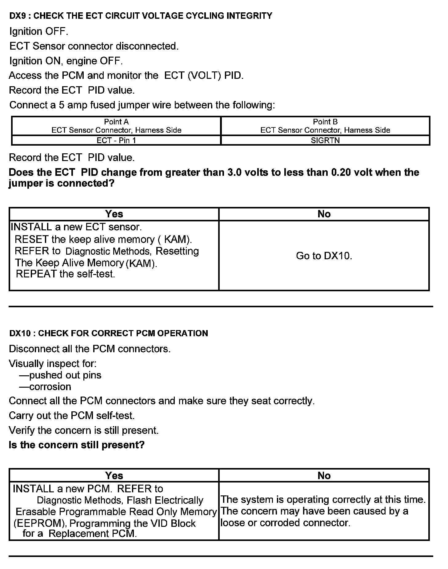 Home >> Ford >> 2012 >> Transit Connect L4-2.0L >> Repair and Diagnosis >> Powertrain Management >> Computers and Control Systems >> Testing and Inspection >> Pinpoint Tests >> Test DX: Engine Coolant Temperature (ECT) Sensor