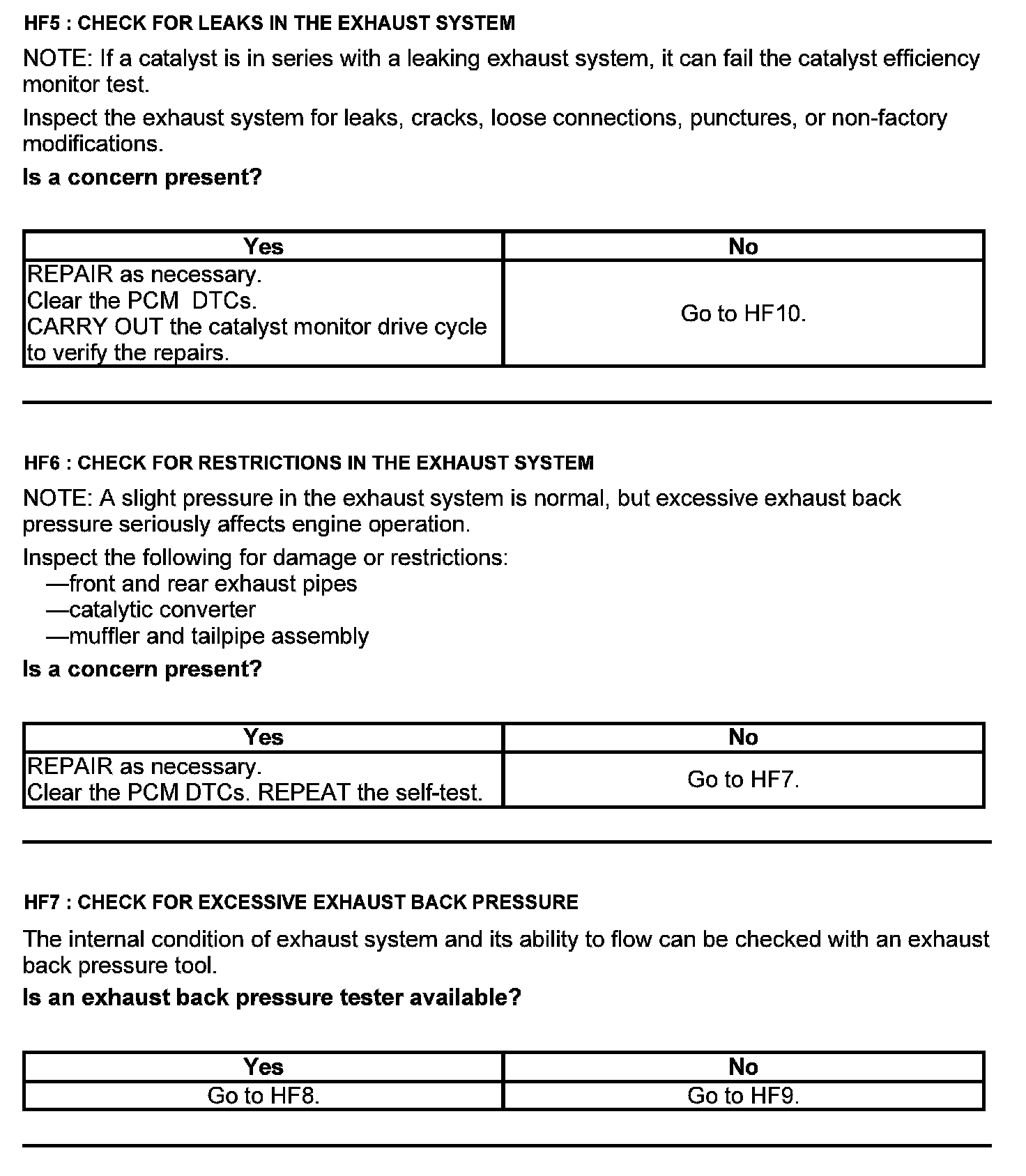 Test HF: Catalyst Efficiency Monitor and Exhaust Systems