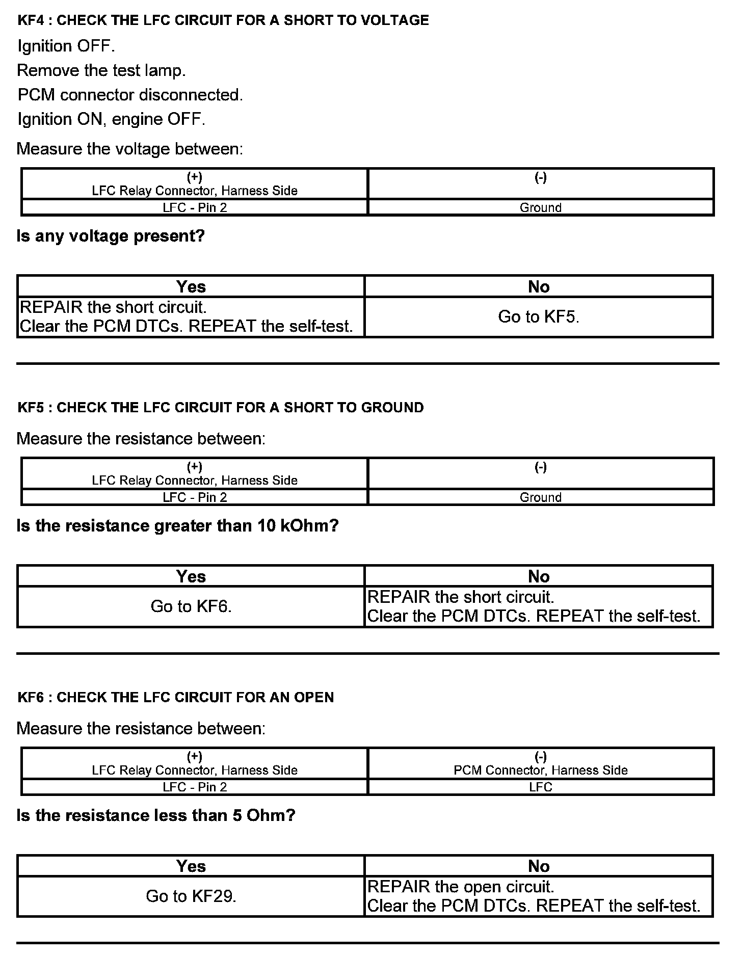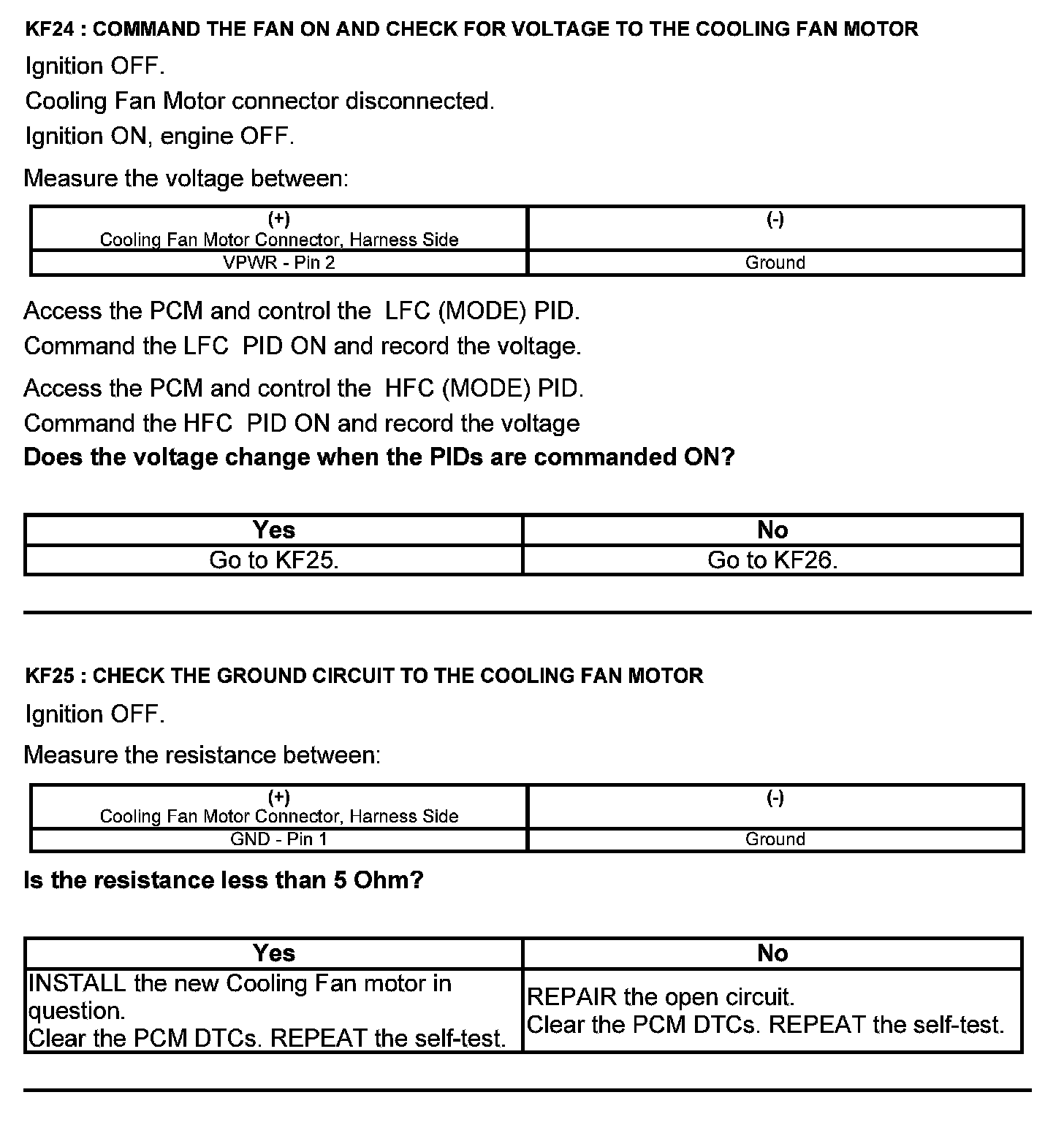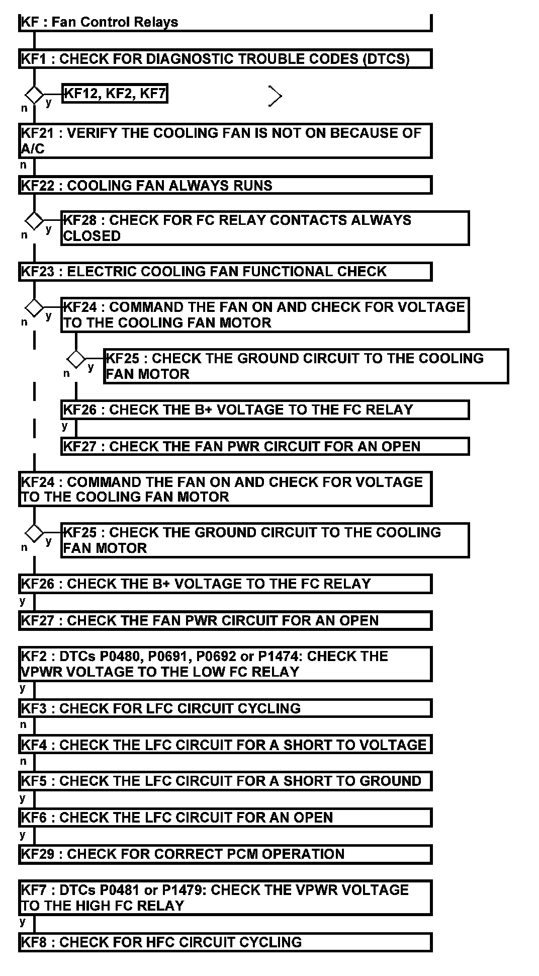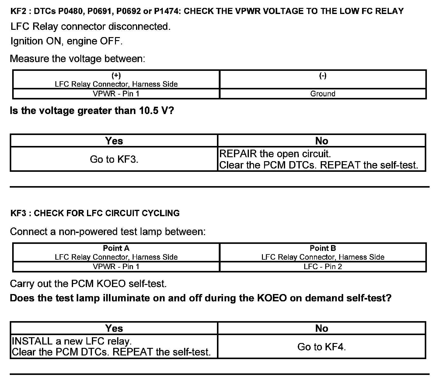 Home >> Ford >> 2012 >> Transit Connect L4-2.0L >> Repair and Diagnosis >> Powertrain Management >> Computers and Control Systems >> Testing and Inspection >> Pinpoint Tests >> Test KF: Fan Control Relays