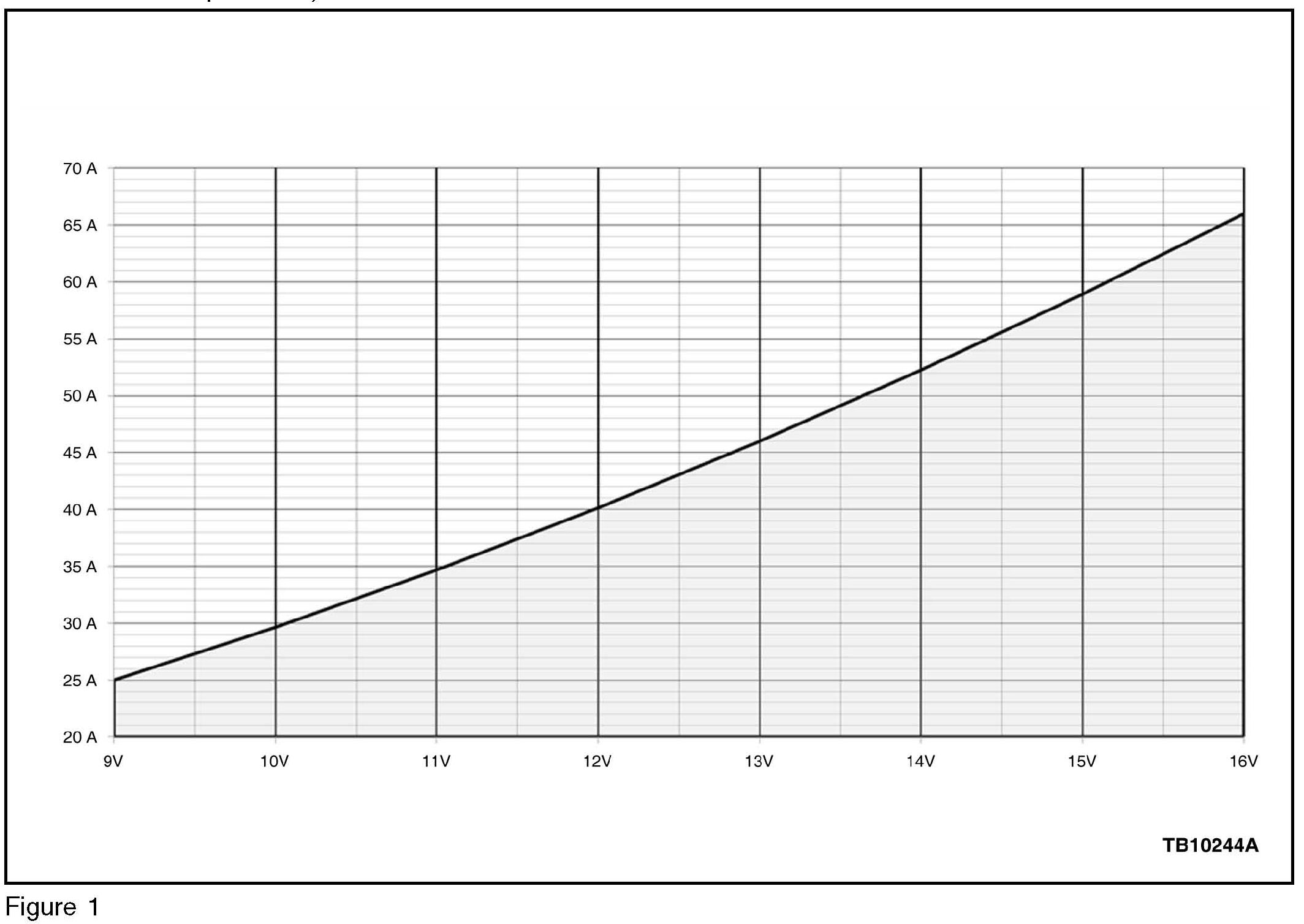 d. Compare recorded readings to the chart. (Figure 1) Does your measured reading for voltage and amperage lie within the shaded area of the graph shown? (Figure 1)