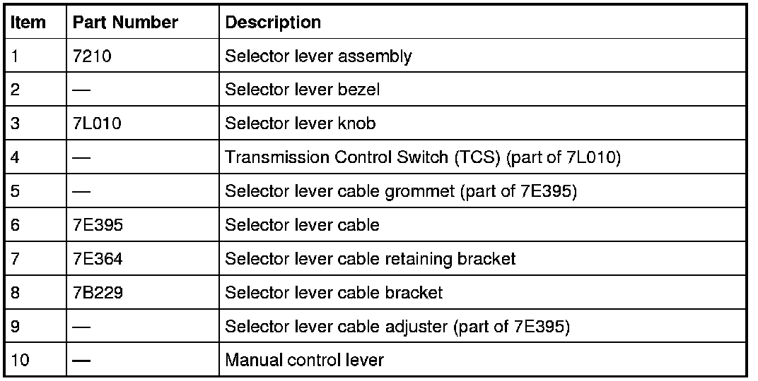 - Allows the driver to move the selector lever from the PARK position, the ignition must be turned to the ON position, brake pedal must be pressed and selector lever release button pressed in.