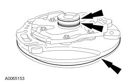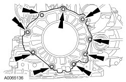 47. NOTICE: The intermediate/Overdrive (O/D) band servo cover plate is spring loaded. The bolts should be removed evenly until plate is unloaded, then remove the bolts. Failure to do so can result in bolt thread damage.