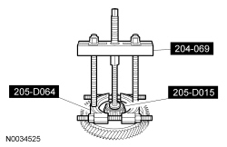 68. Using the Front Wheel Hub Remover/Installer, Bearing Puller and Step Plate remove the final drive input gear bearing inner race.